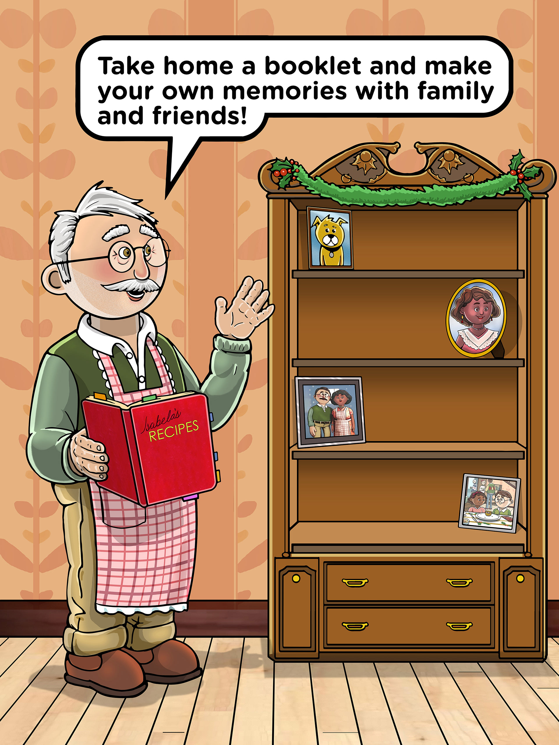 Through the story we invited kroger shoppers to participate by sharing their own memories and offering them a take-home mini recipe booklet to share with their families. Alongside the story in the book are QR codes that lead to each recipe's ingredients as a shopping list made available in our stores.